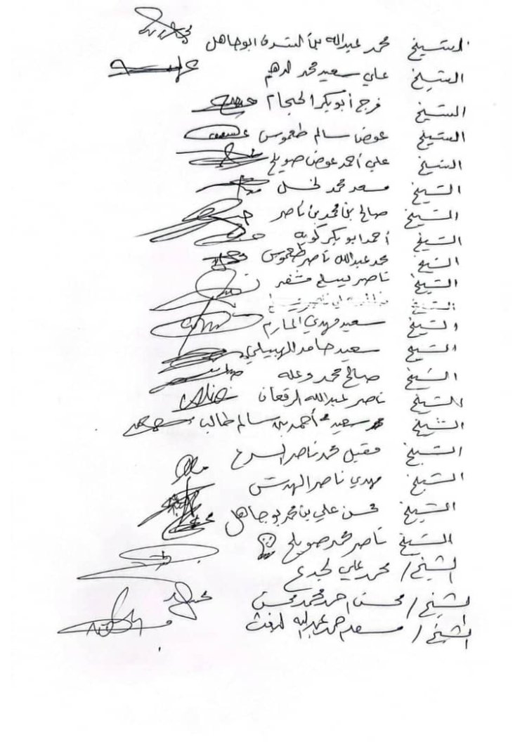 وجاء في البيان" الذي صدر عن مشايخ ووجهاء القبيلة بمديرية حبان منطقة الخبر، أن القبيلة ترفض استغلال اسمها في الصراعات السياسية أو العسكرية، وتؤكد التزامها بالمبادئ والأعراف القبلية التي تحفظ وحدة الصف وتماسك المجتمع.